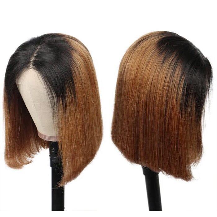 QT Hair Dark Roots Ombre Color 30 Lace Wigs Short Bob Siky Straight Human Hair |QT Hair