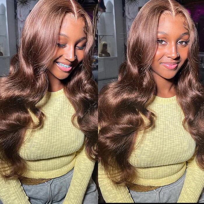 Chocolate Brown Color #4 Body Wave Lace Wigs Pre Plucked Human Hair