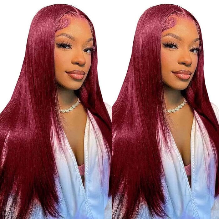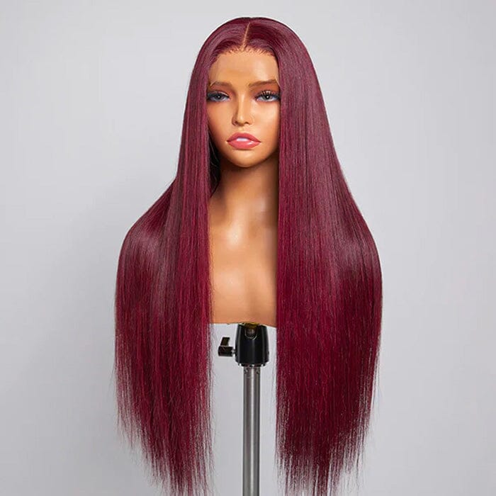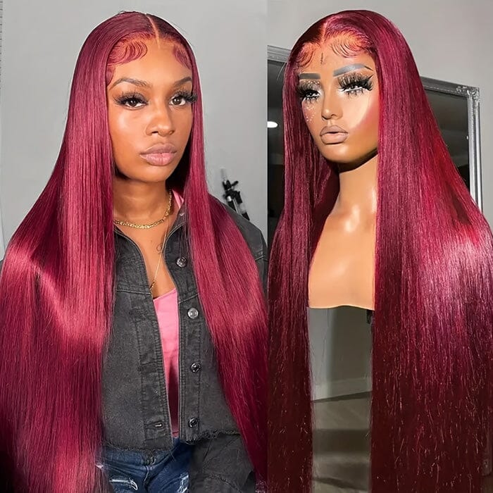 QT Hair 99J Color Lace Closure Wigs Pre Plucked Human Hair Silky Straight |QT Hair
